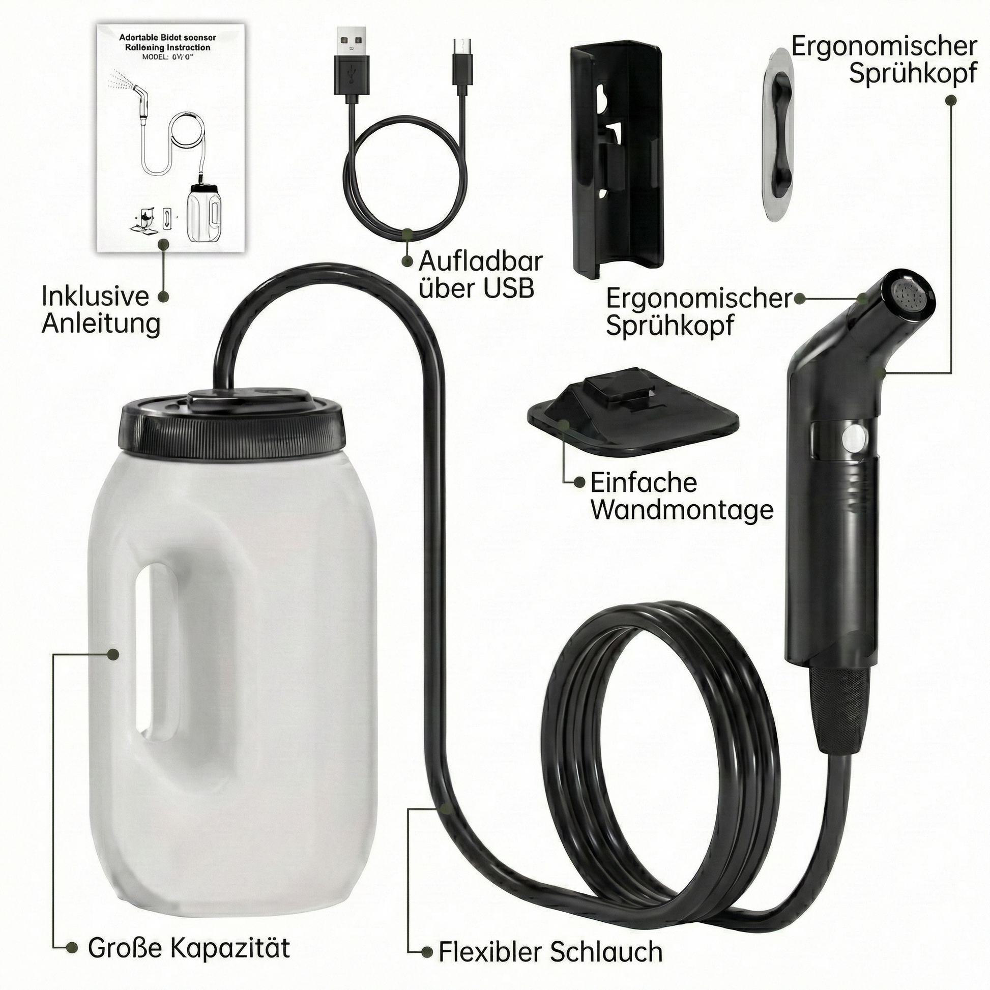 Lernen Sie das Tragbare Elektrische Bidet kennen. Speziell entwickelt für Mieter und alle, die Istinja/Hygiene ernst nehmen, aber keinen Umbau wünschen.
