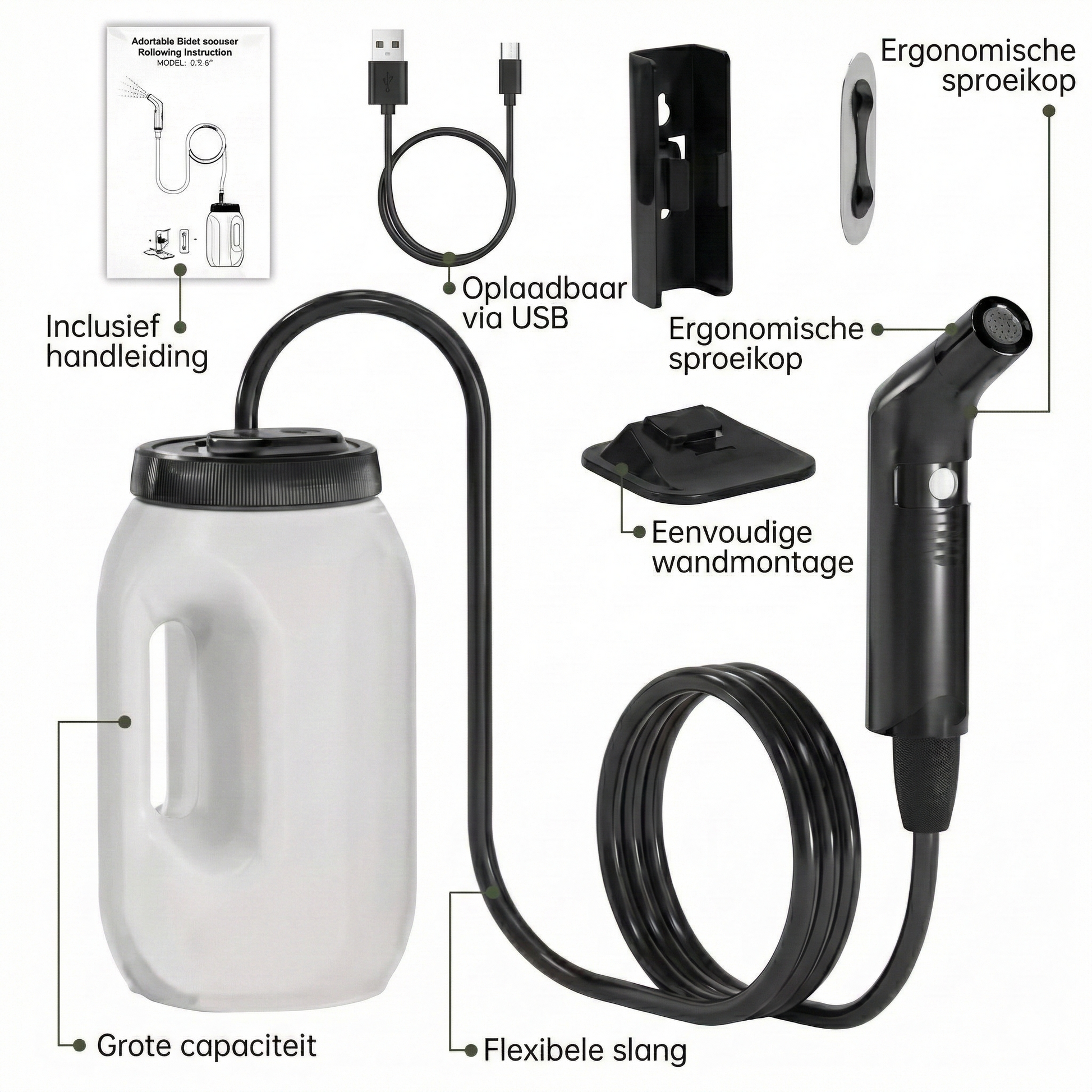 Ontmoet de Portable Electric Bidet. Speciaal ontworpen voor huurders en iedereen die Istinja/hygiëne serieus neemt, maar geen verbouwing wil.