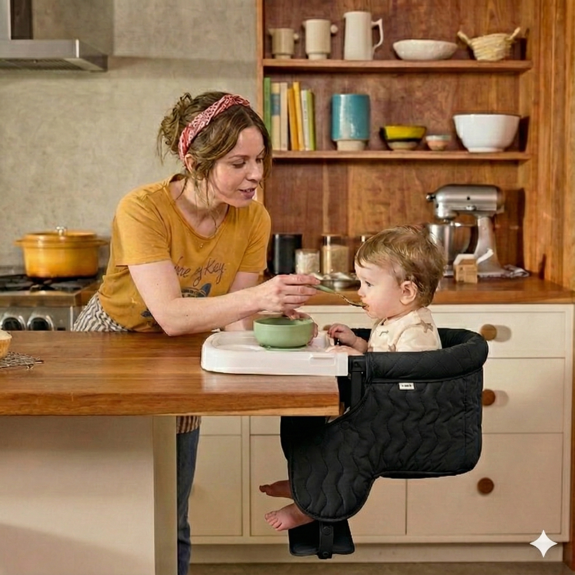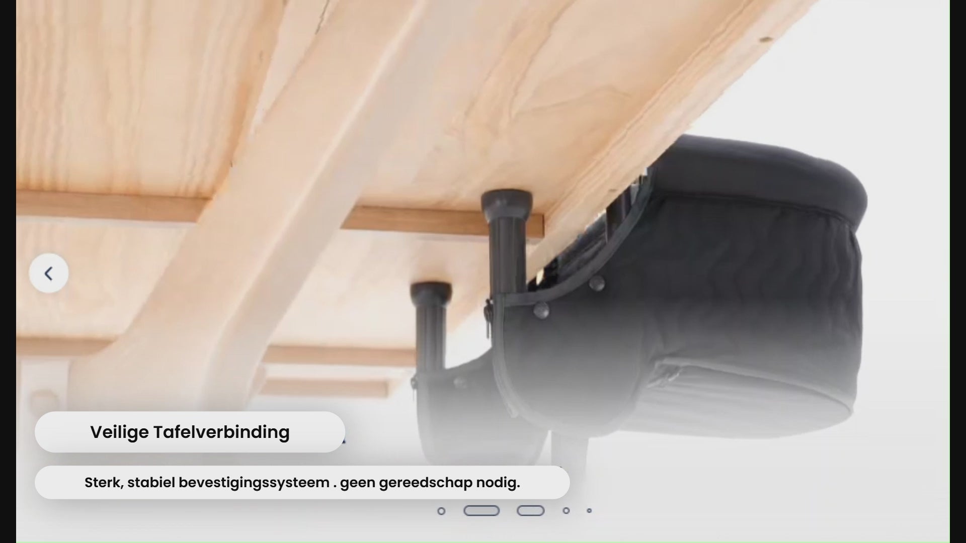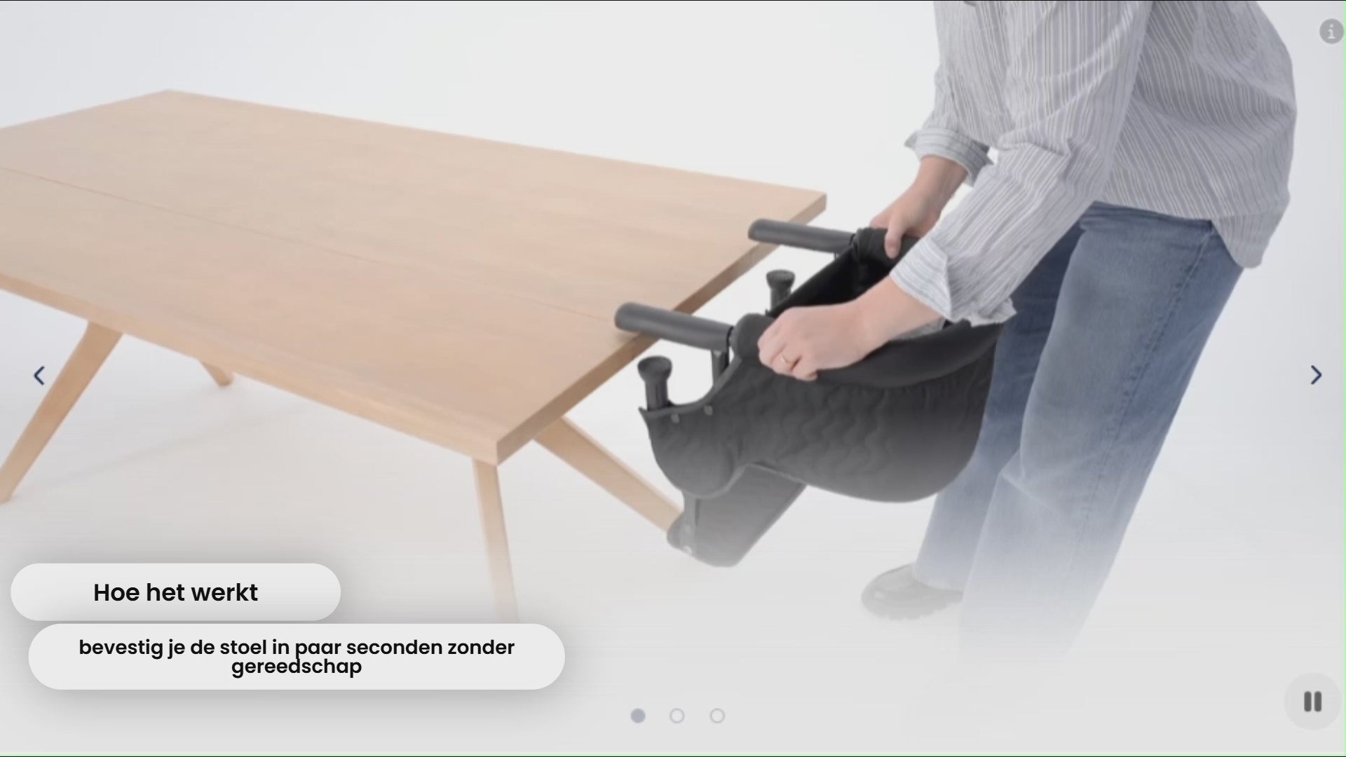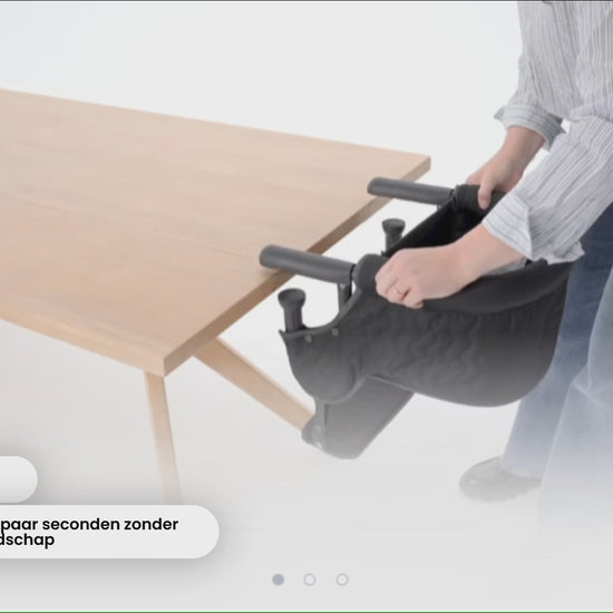 Bevestig de stoel gemakkelijk aan de meeste tafels en oppervlakken zonder gereedschap. Ideaal voor kleine ruimtes of voor onderweg.